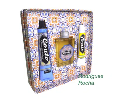 Apresentação: Embalagem com um creme de barbear de 70 g, after shave de 125 ml e pasta dentífrica couto de 60 g.